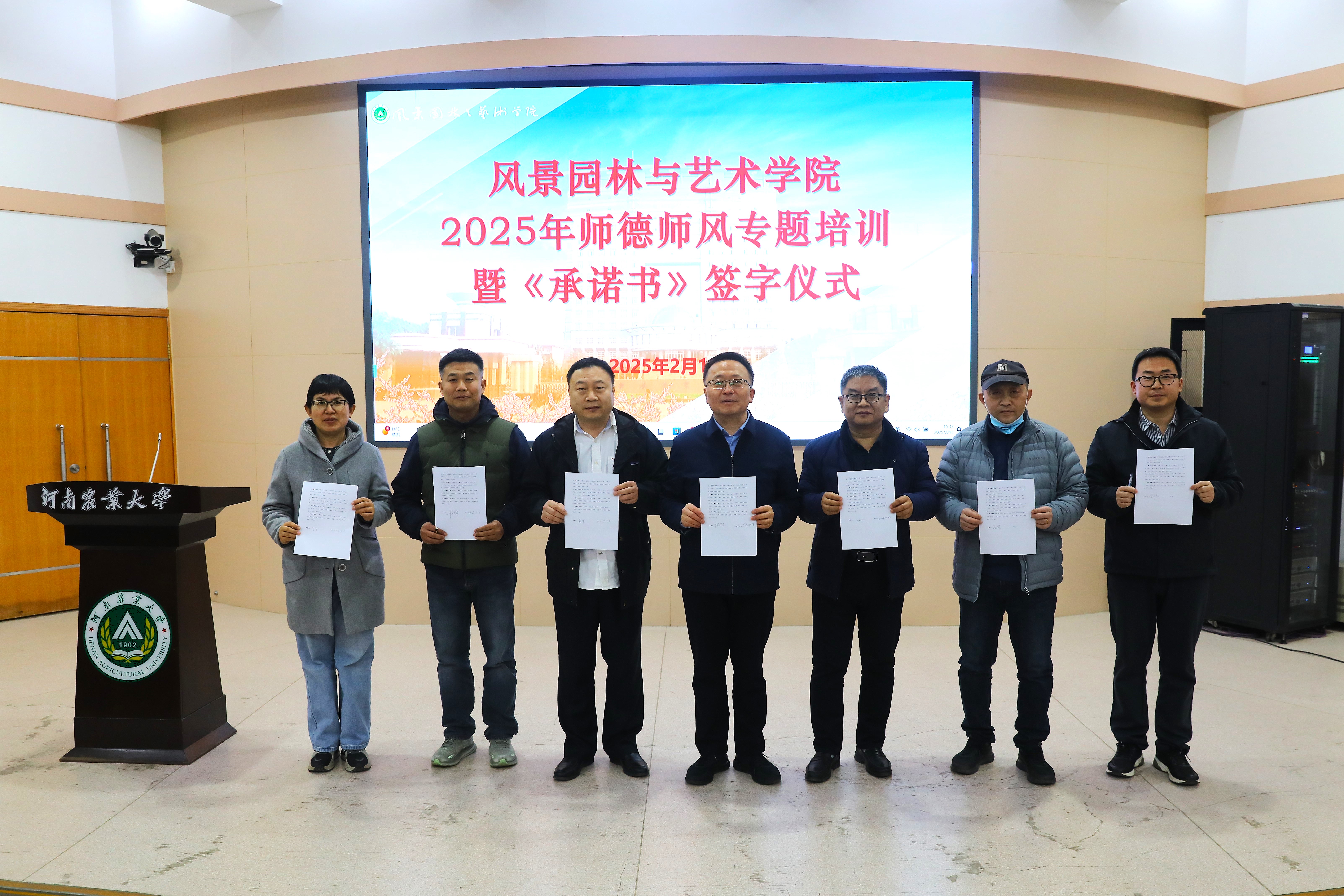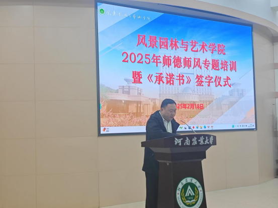 在庄重的签字仪式环节中,院党委书记侯永华带领领导班子成员、各系主任及全体教师庄严签署《一品探花 师德承诺书》。承诺书包含“坚定政治方向”、“自觉爱国守法”、“潜心教书育人”、“遵守学术规范”等十项核心条款。通过师德师风专题培训,进一步强化教师的职业荣誉感与责任感,引导全体教师以更高的标准要求自己,为学生成长成才保驾护航。