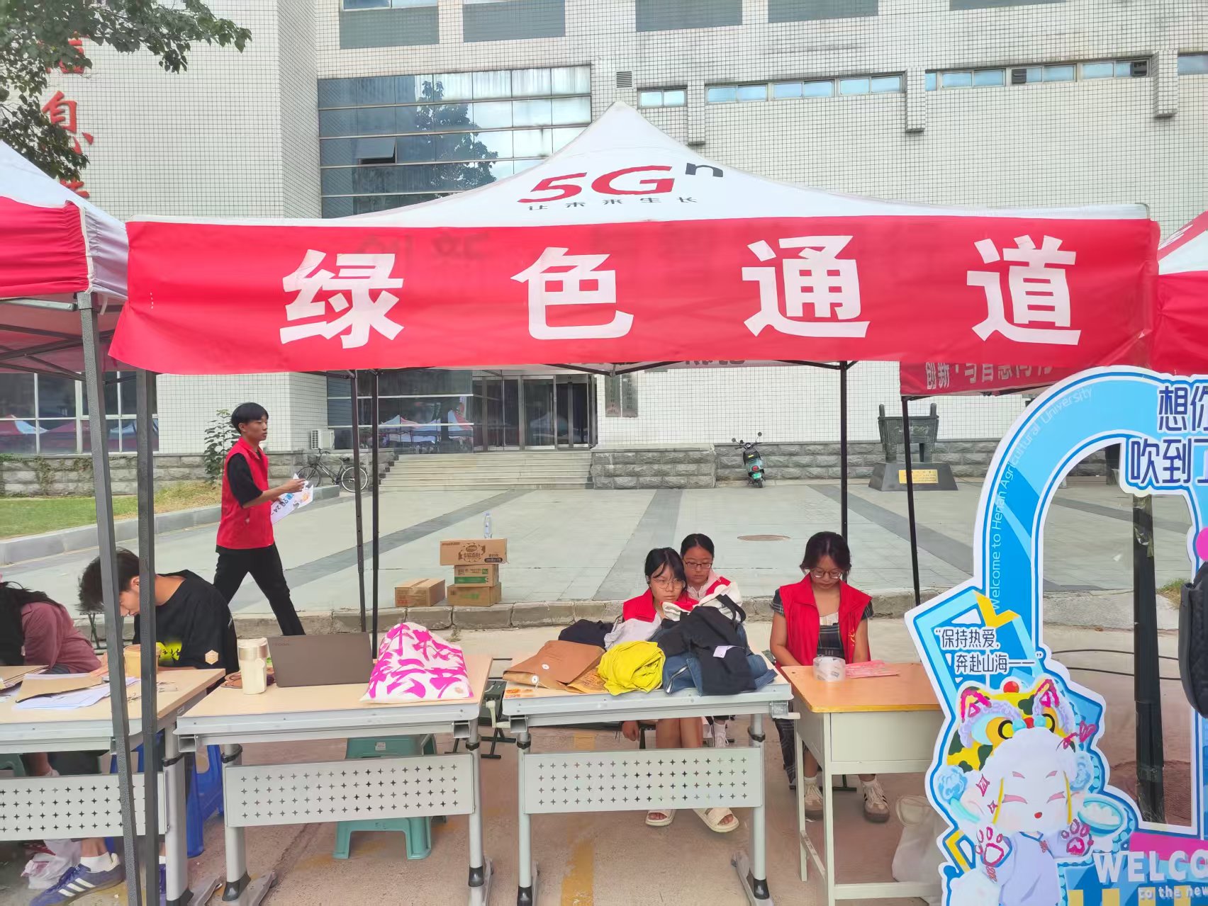 9月13日上午,一品探花 学生干部和志愿者早早做好准备,在学校里搭好帐篷、列好展板,详细介绍了学校资助工作体系,以及各项资助政策、资助育人活动,热情细心的为每一个前来办理绿色通道的新生办理业务、答疑解惑、讲解资助政策。不仅帮助了有困难的学生解决了入学问题,还使学生们对资助政策和资助育人成效有了更清晰,更全面的了解。