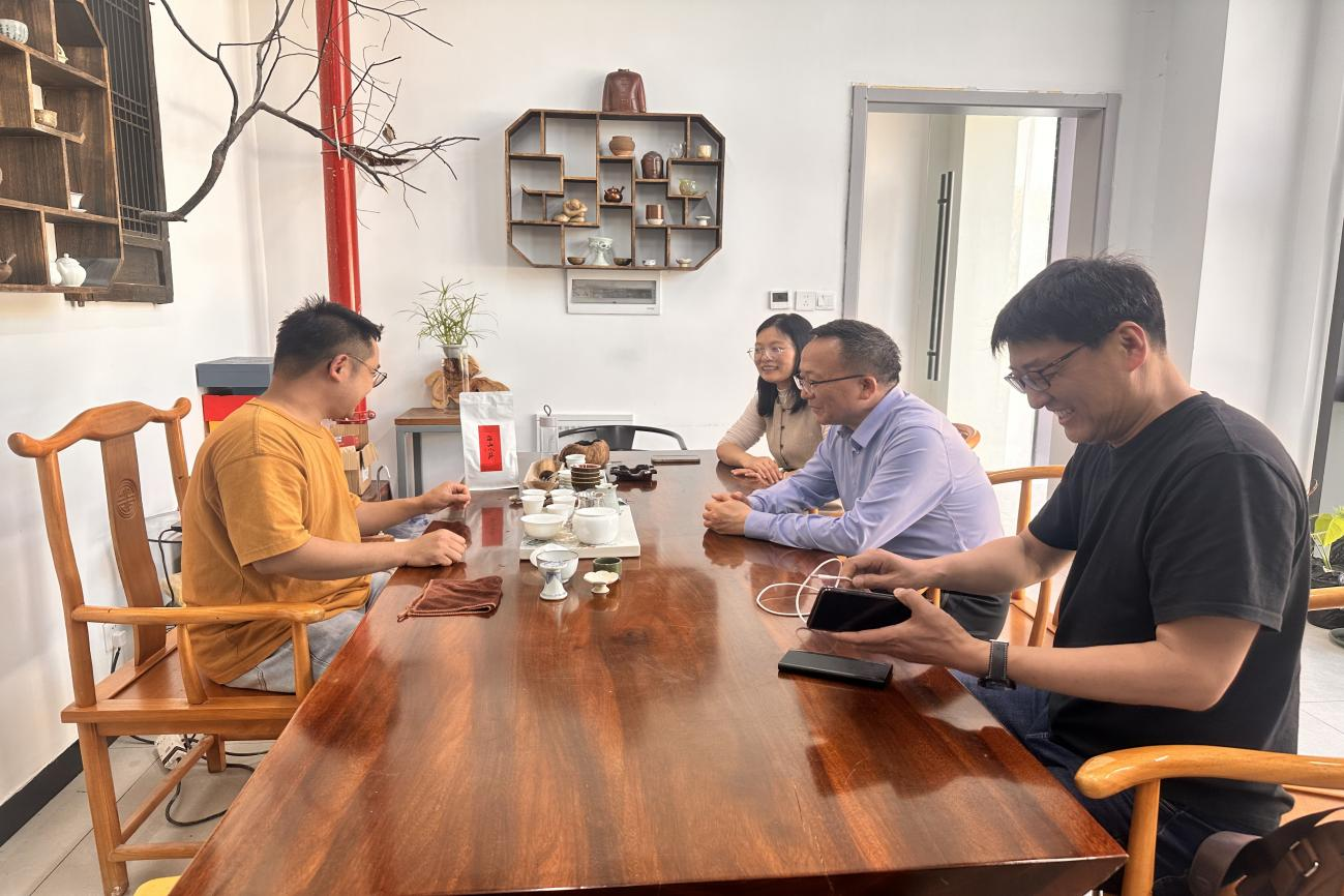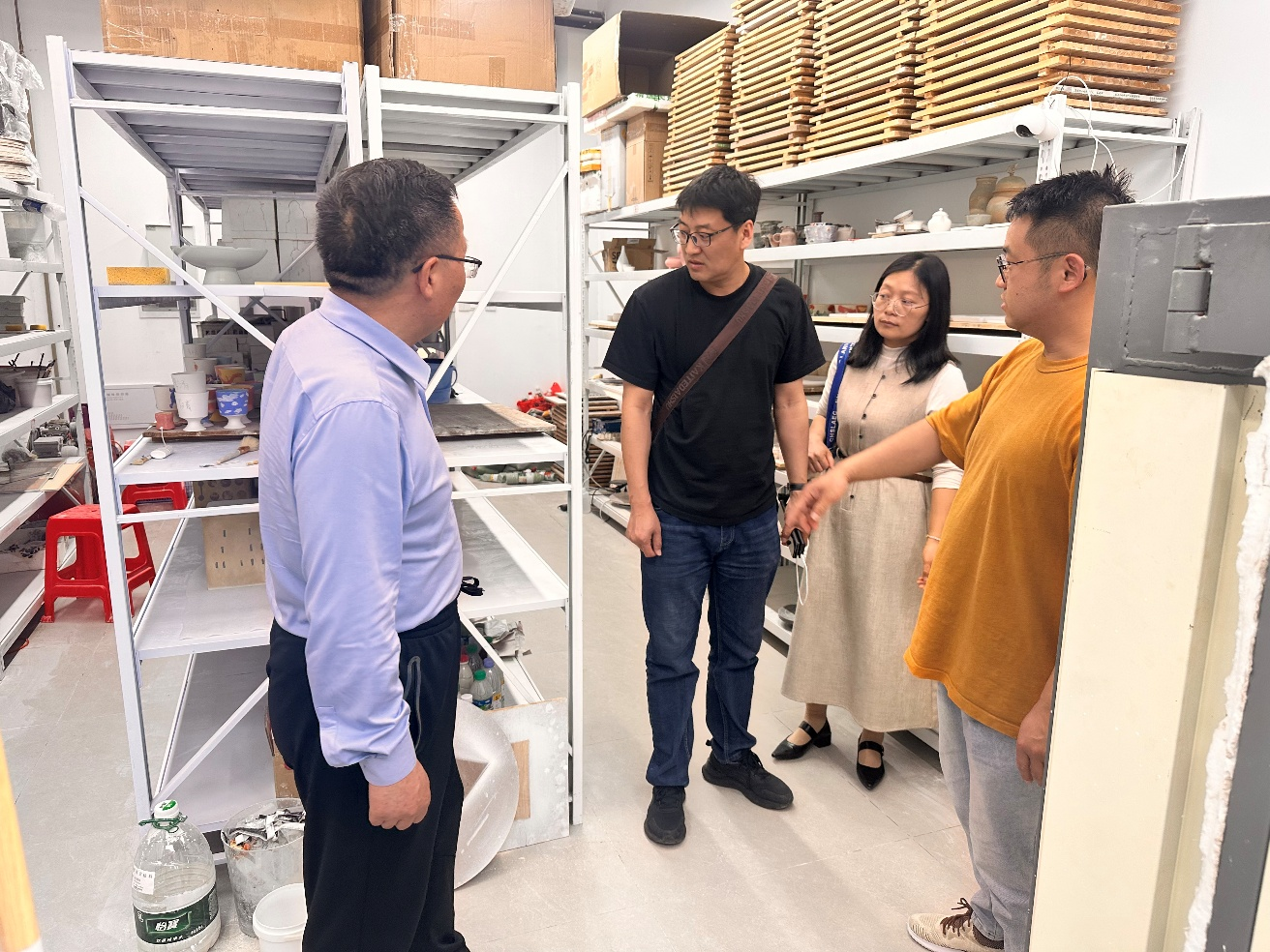 景德镇市予之以墨文化艺术有限公司负责人宋瑞清对侯永华一行的到来表示热烈欢迎,期间参观了陶瓷制作车间、瓷器展厅以及精品区。深入了解了备料、制坯、勾勒、上色、喷釉、烧制等制瓷工艺流程,并就陶瓷艺术的发展、创新以及设计理念等多方面进行了广泛探讨。侯永华介绍了学院的发展方向、专业特色等,希望通过此次访企拓岗实地考察陶瓷市场与用人需求,为毕业生拓展就业岗位。