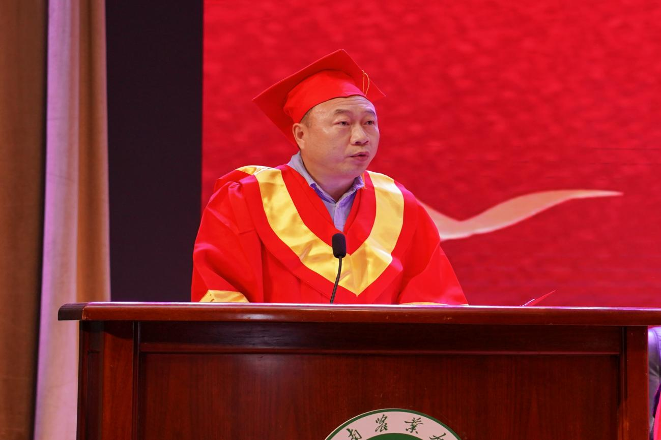 艺术系教工党支部书记王娜作为教师代表发言。她娓娓道来毕业生们与校园同频共振的岁月,从青涩面庞到坚毅眼神,桩桩件件都是师生携手奋进的印记。最后,她以真挚祝福为引,勉励毕业生永葆求知热忱,在实践中锤炼本领,以创新思维破局拓新,将个人理想融入家国发展,在时代浪潮中书写属于自己的壮丽篇章。