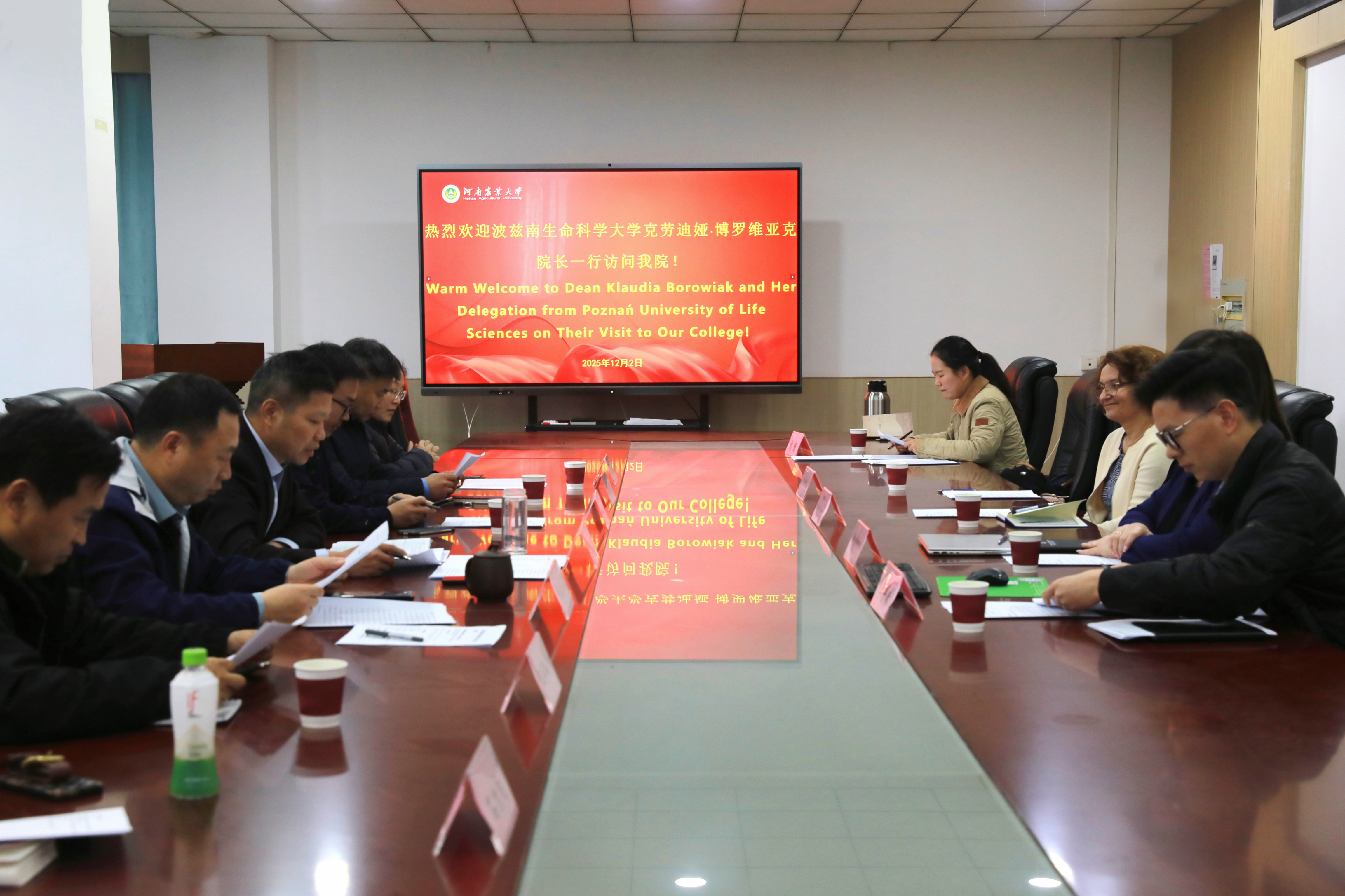 胡明忠代表学院致欢迎辞。他对克劳迪娅・博罗维亚克院长一行远道而来表示热烈欢迎,对双方前期在人才培养与科技创新领域取得的合作成果给予肯定。李永华介绍了学院和学科发展情况。他指出双方已通过Erasmus+交换项目、国家留学基金委“乡村人才培养专项”等项目实现师生互访与学术交流,为双方在人才联合培养、项目联合申报等进一步深化合作打下良好基础。他强调,波方学科优势与一品探花 发展需求高度契合,希望通过此次座谈进一步拓展交流合作空间。